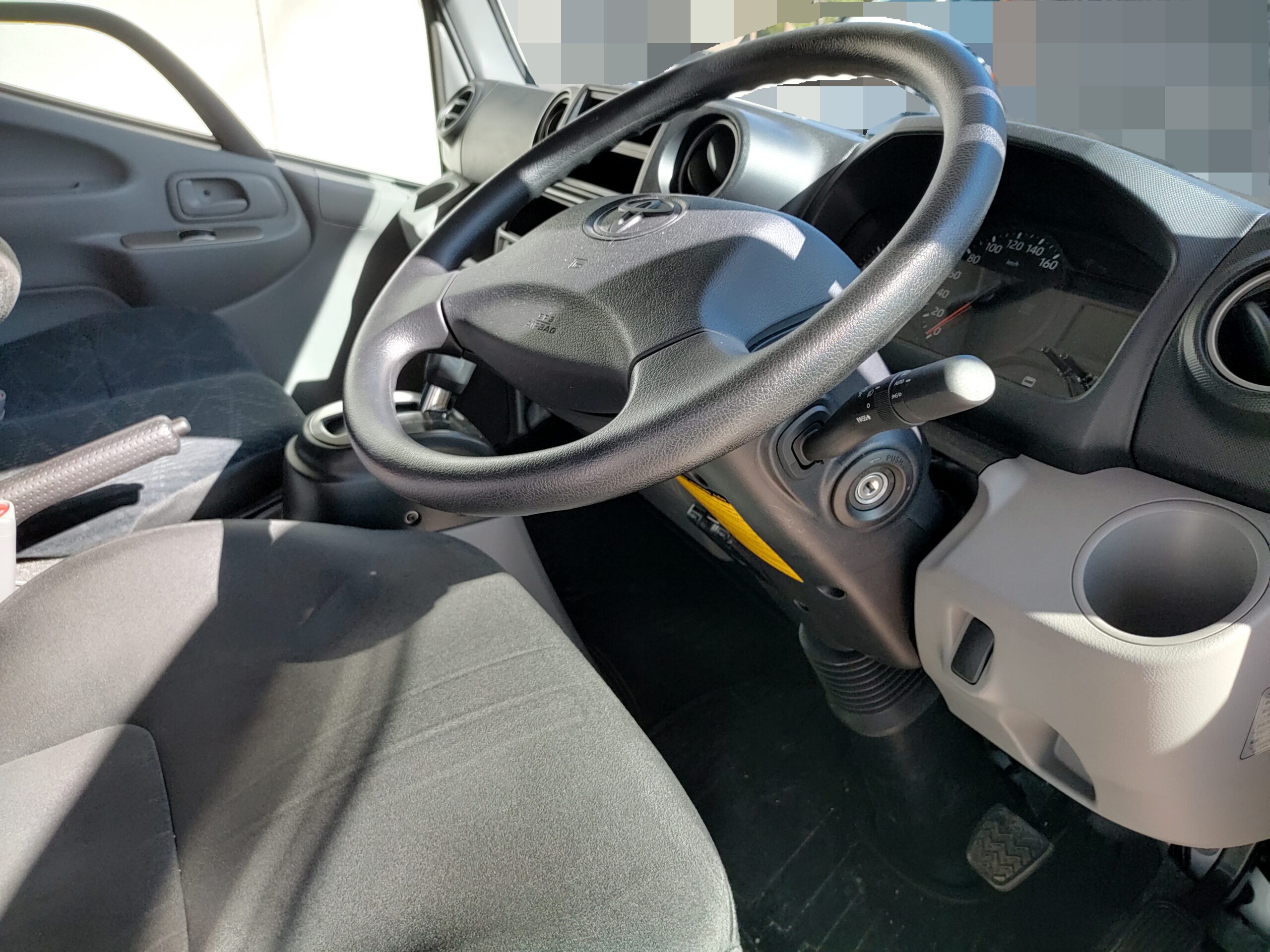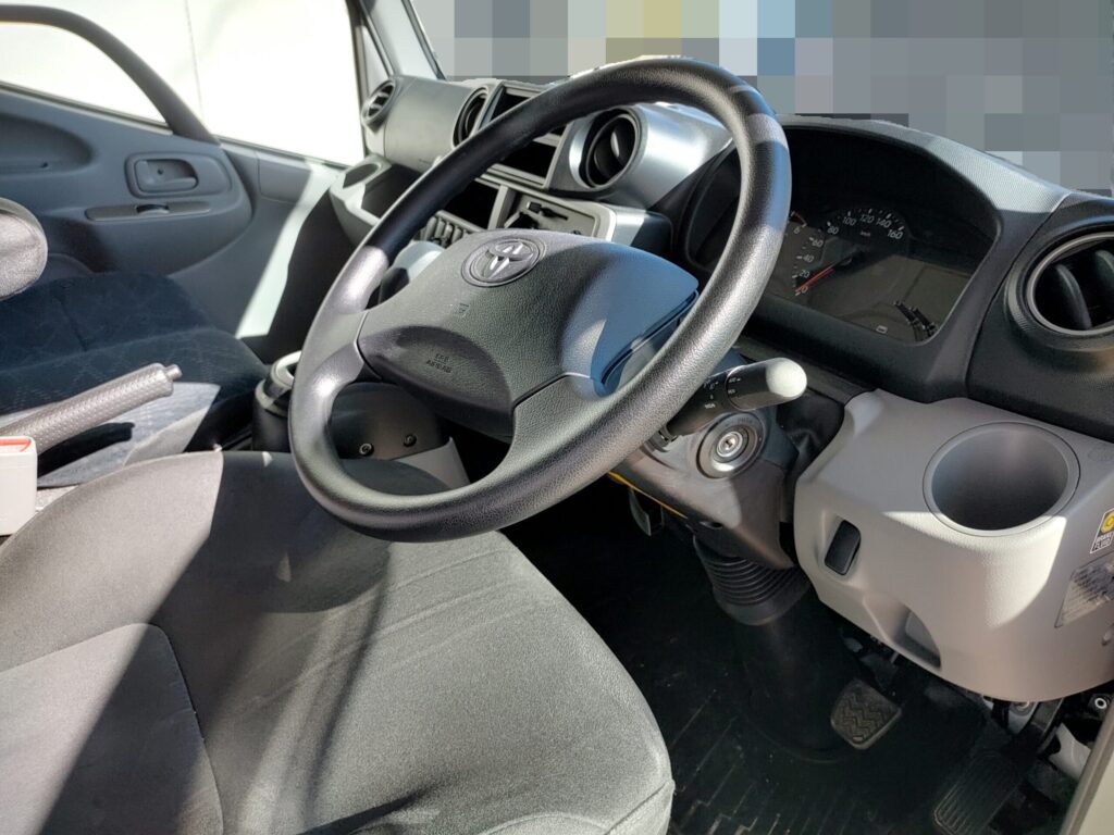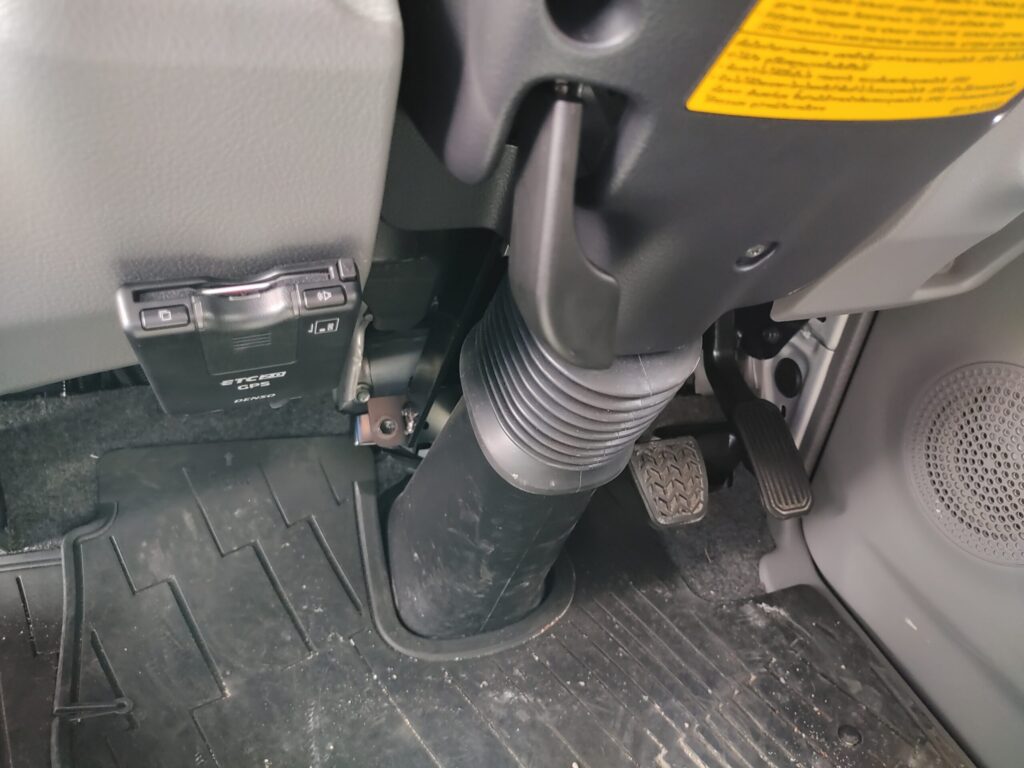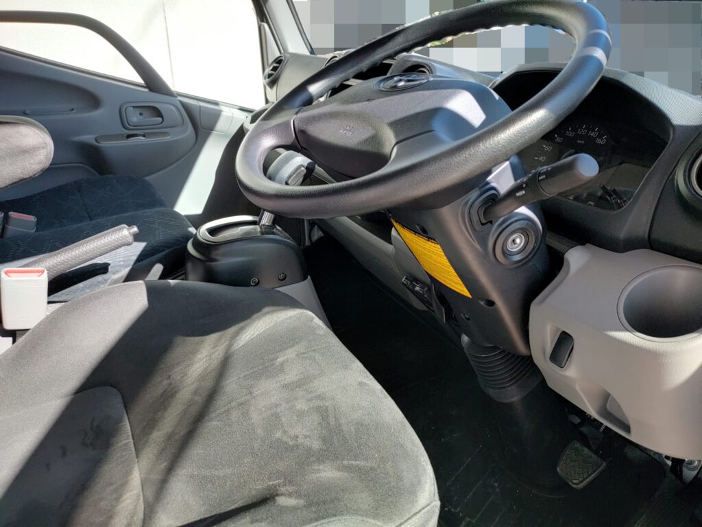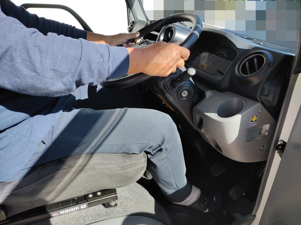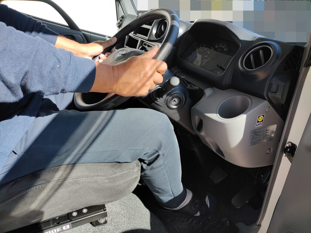 ↑こちらは私がカムロードベースのキャンピングカーを運転する際の通常のハンドル位置。