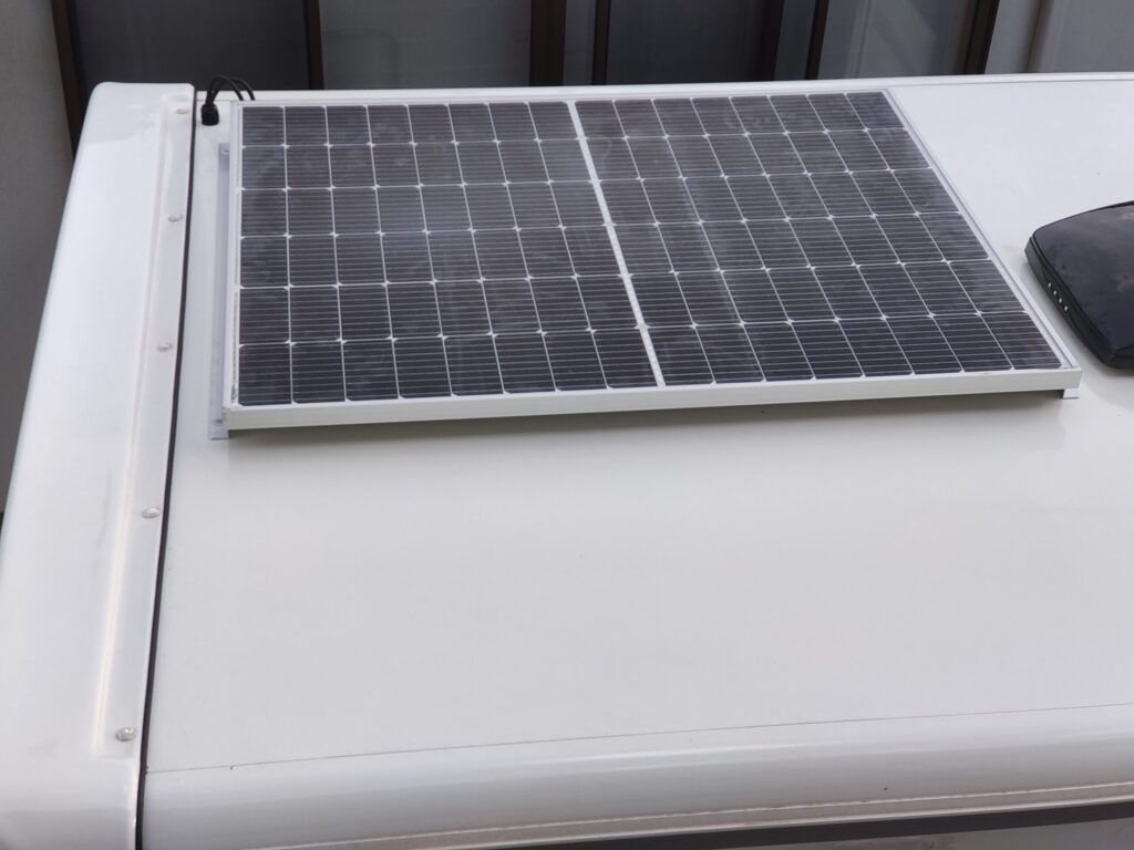 キャンピングカー買う時から検討していたソーラーパネル。ようやっと取り付けました。