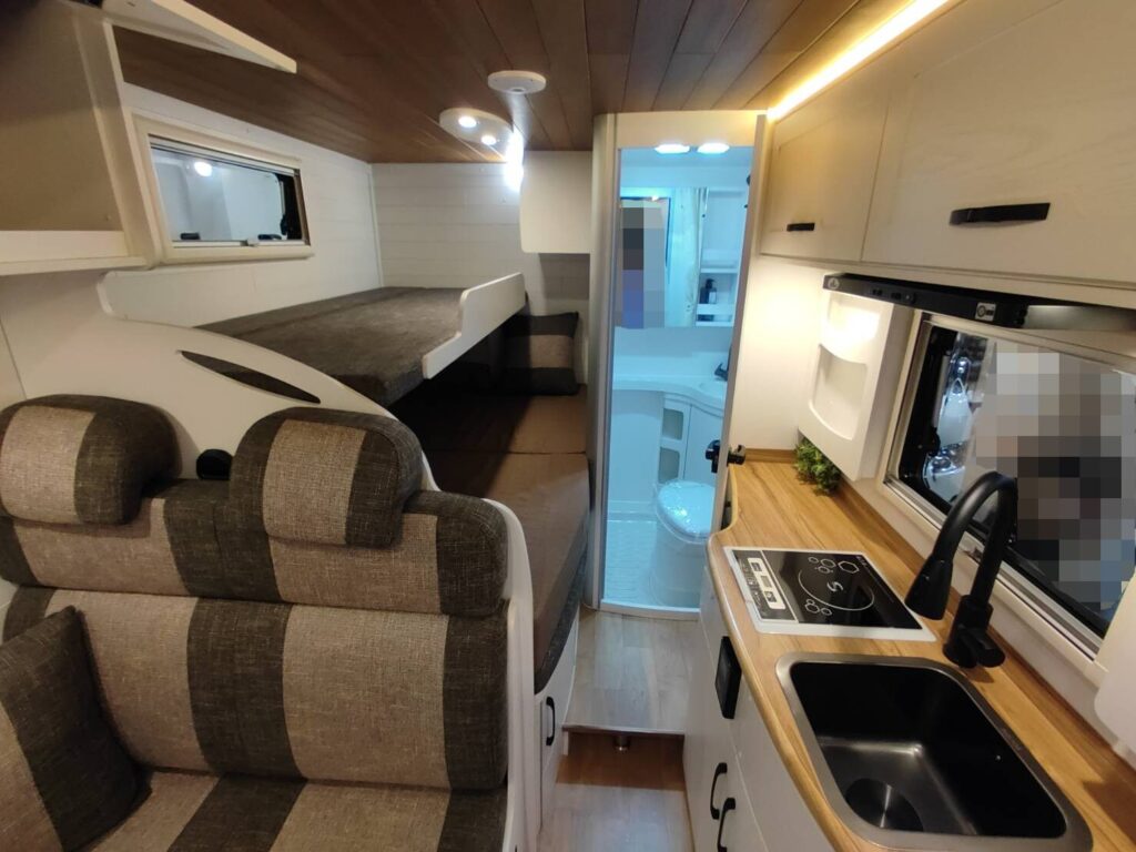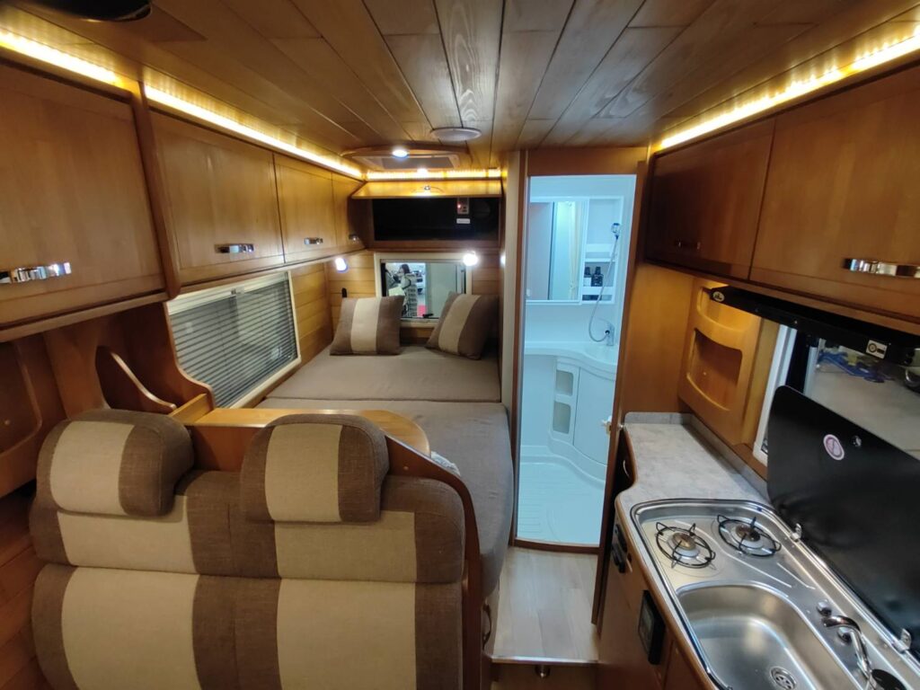 この車種に共通する設計としては、キャンピングカーの中で中長期生活ができるほどに装備が入れ込まれていること。