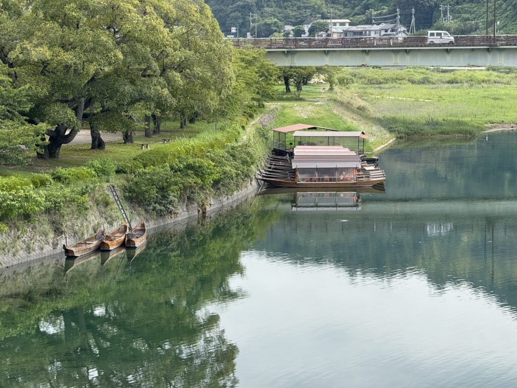 橋が架かる錦川では遊覧船も楽しむことができ、さらに奥へ進んでいくと山の上にある岩国城へ繋がるロープウェーがあり(こちらも有料)、旧城下町全体を見渡せる風景を眺めることができます。