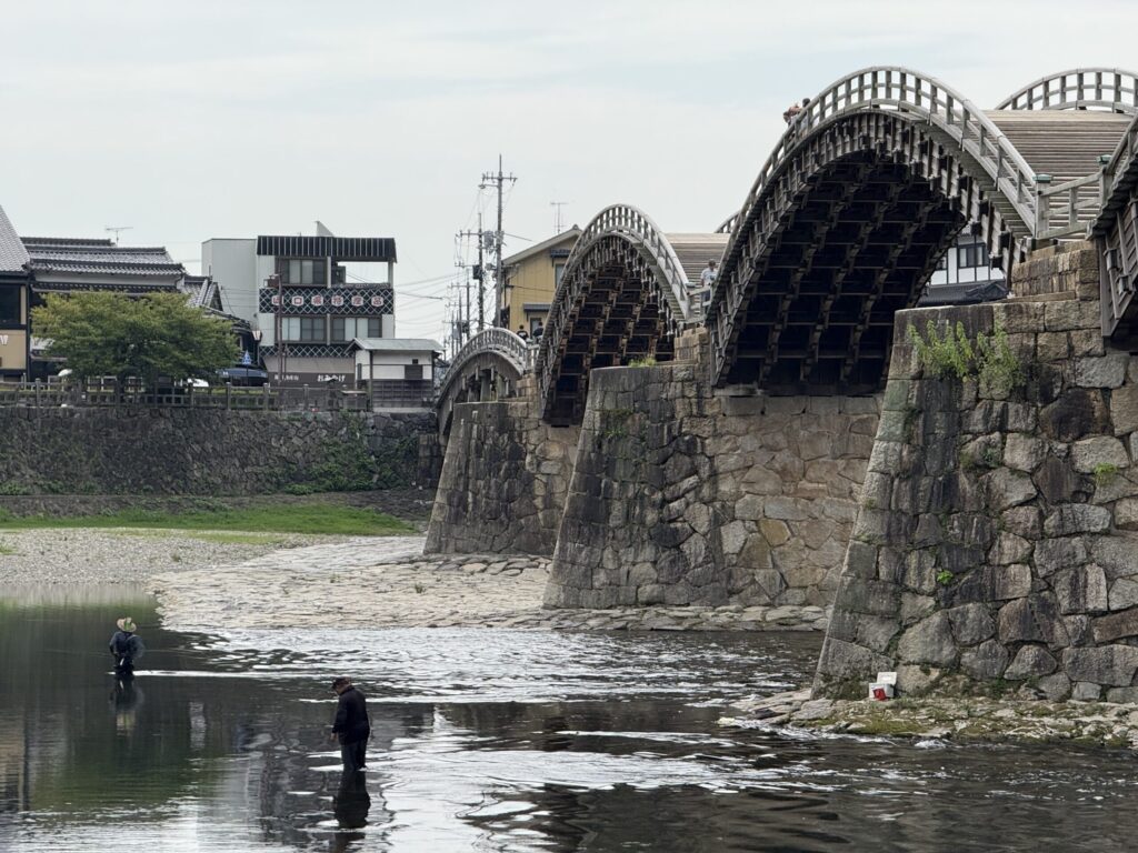 ↑錦帯橋付近では鮎釣りをしている人も。絵になります。